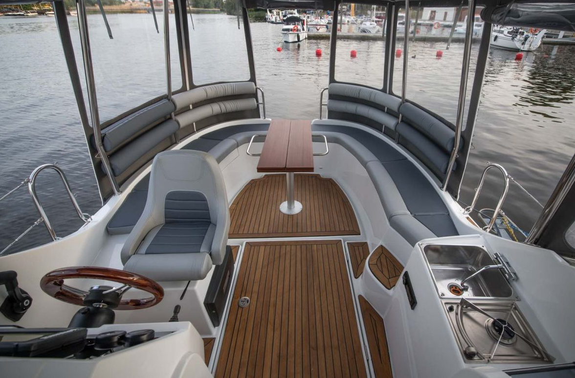 Navigator 999 Prestige to jacht motorowy typu „houseboat”. Doskonale nadaje się na wypoczynek z rodziną lub przyjaciółmi na łonie natury, na wodach śródlądowych, kanałach i rzekach. Posiada klasyczny kadłub wypornościowy, stabilny i bezpieczny. Ekonomiczny silnik i 120 l zbiornik paliwa pozwalają na długie pływanie bez tankowania. wbudowany w standardzie ster strumieniowy pozwala na bezkolizyjne i precyzyjne wpłynięcie do każdego portu. Na naszej łodzi może wypoczywać każdy od najmłodszych do najstarszych. Zarówno na pokładzie jak i w kabinie znajduje się wiele relingów i uchwytów pozwalających na bezpieczne poruszanie się po jachcie. Wygodny, duży kokpit, platforma kąpielowa i pokład słoneczny na kabinie pozwolą na czerpanie w pełni z uroków lata.